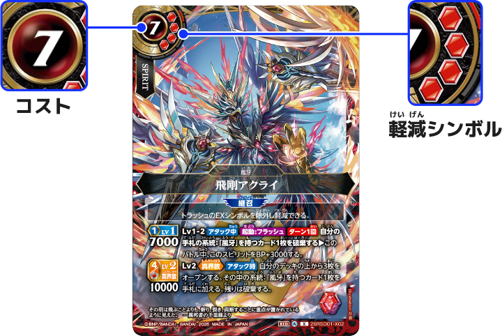 「飛剛アクライ」のコストは7で、軽減シンボルは